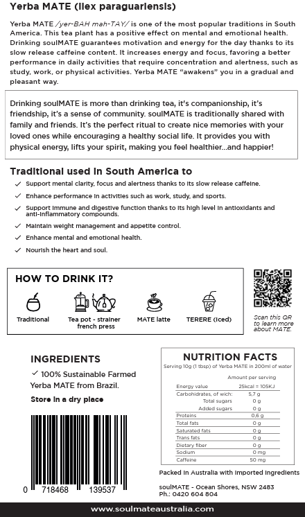 Our Yerba soulMATE blend is smooth herbal taste, full of nutrients, and rich natural antioxidants.